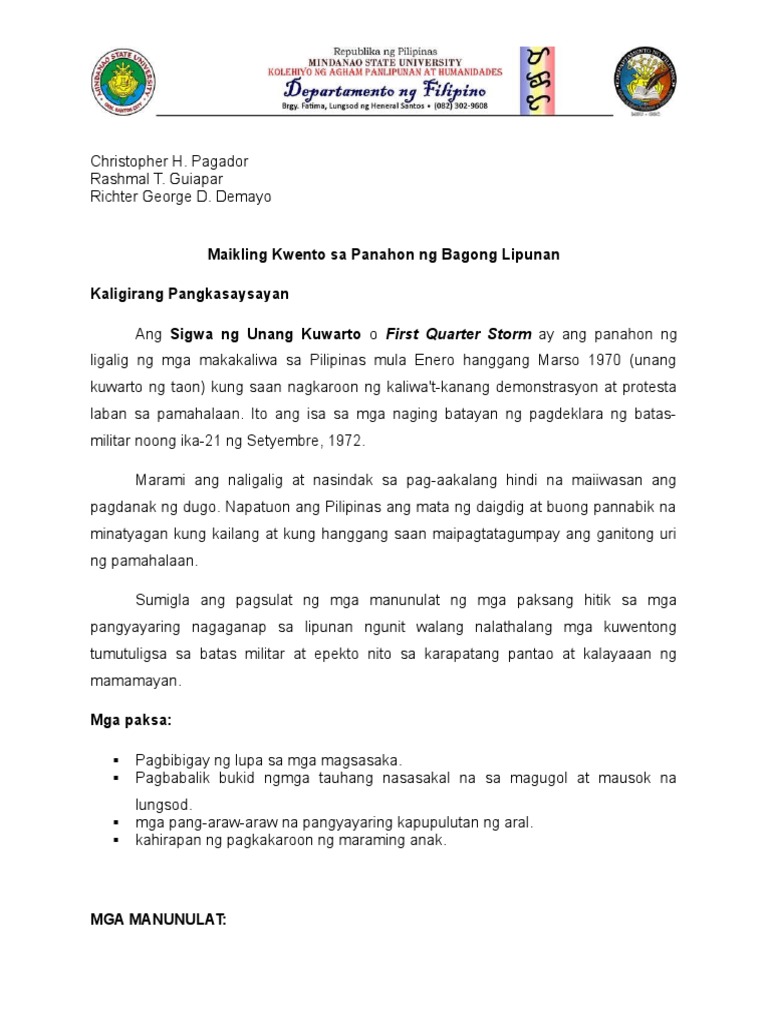 Maikling Kwento Sa Panahon Ng Bagong Lipunan 1 Pdf