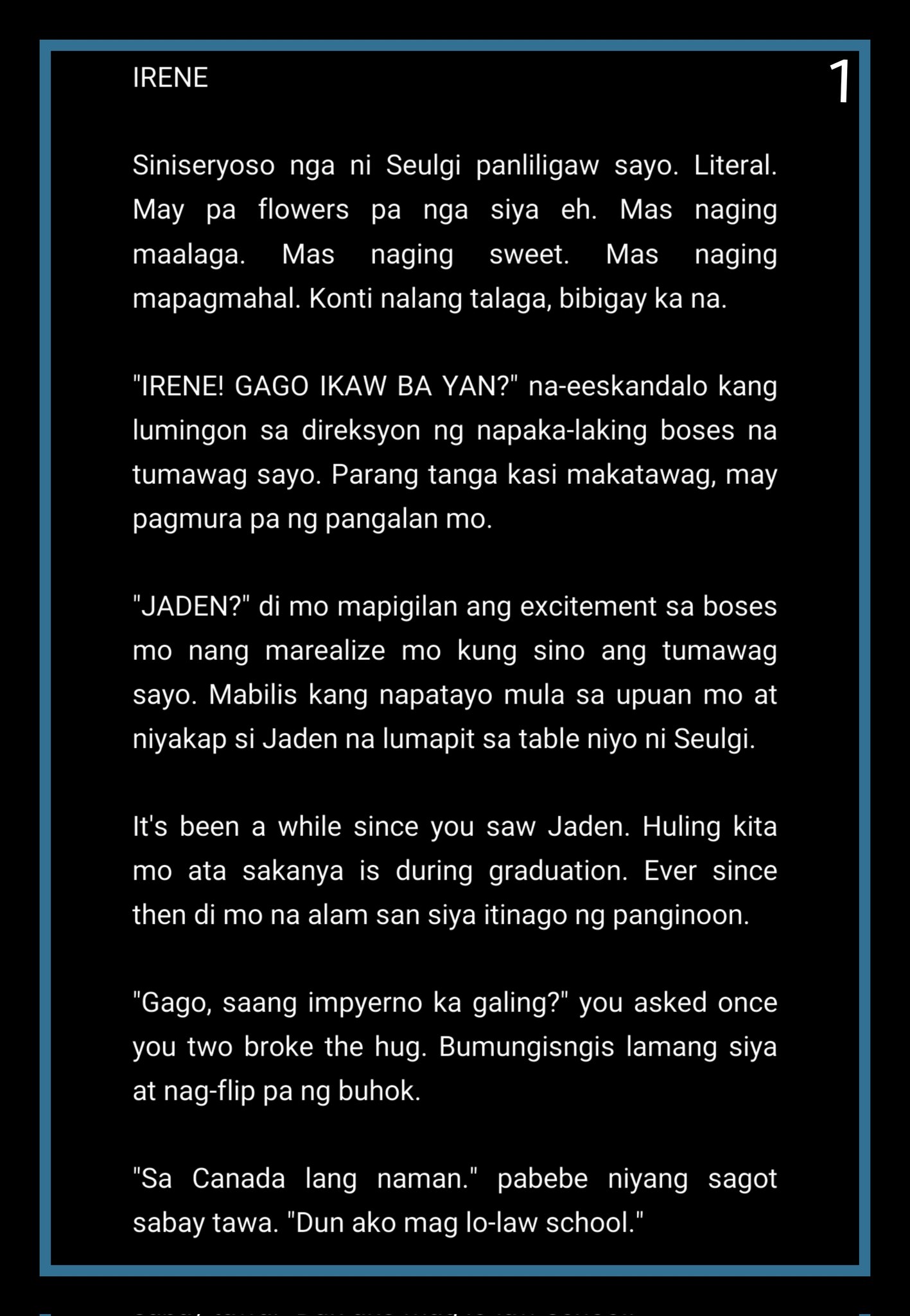 Ayoko kasi mag Salita ng di maganda sa kapwa or ayoko magdesisyon sa mga bagay hang gang may galit pa akong nararamdaman. Nung sinabi nya sakin na sila na wala akong naramdamang aray. We meet but wala na ung pakiramdam na Naramdaman ko nun wla na ung dating baliw sa kanya.